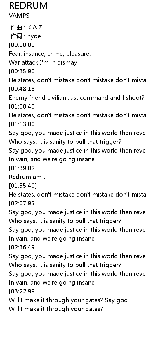 | [01:49.78] | Redrum am I |