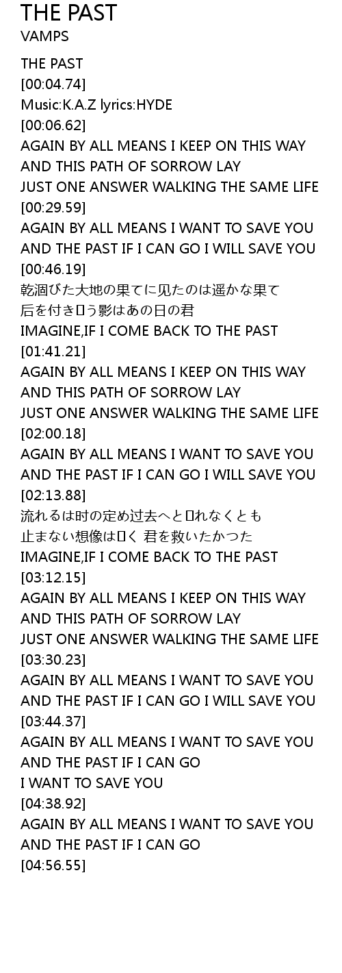 | [00:34.17] | AND THE PAST IF I CAN GO I WILL SAVE YOU |