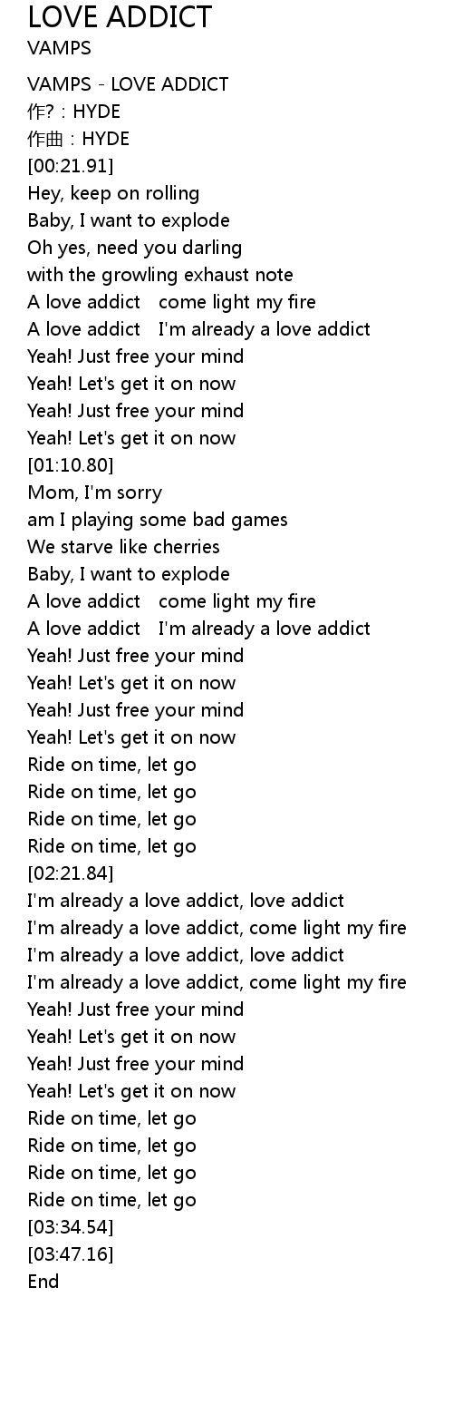 | [00:00.00] | VAMPS LOVE ADDICT |