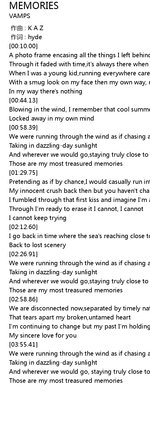 | [00:22.00] | Through it faded with time, it' s always there when I' m looking back |