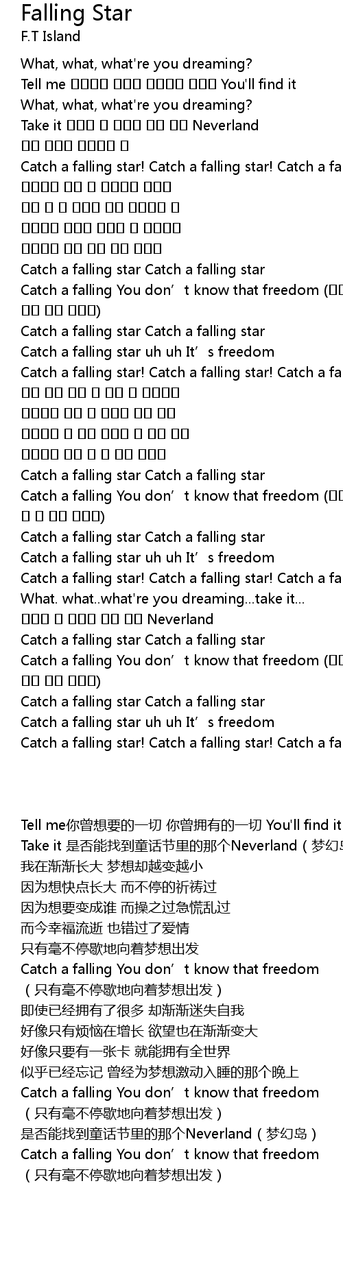 | [02:57.000] | Catch a falling star! Catch a falling star! Catch a falling star! |
