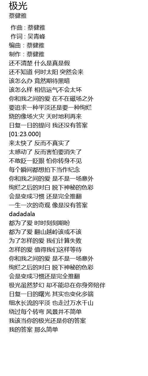 | [04:39.320] | 我该当你的极光还是你的答案 |