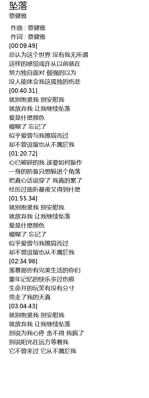 | [02:03.02] | 就放弃我 让我继续坠落 |