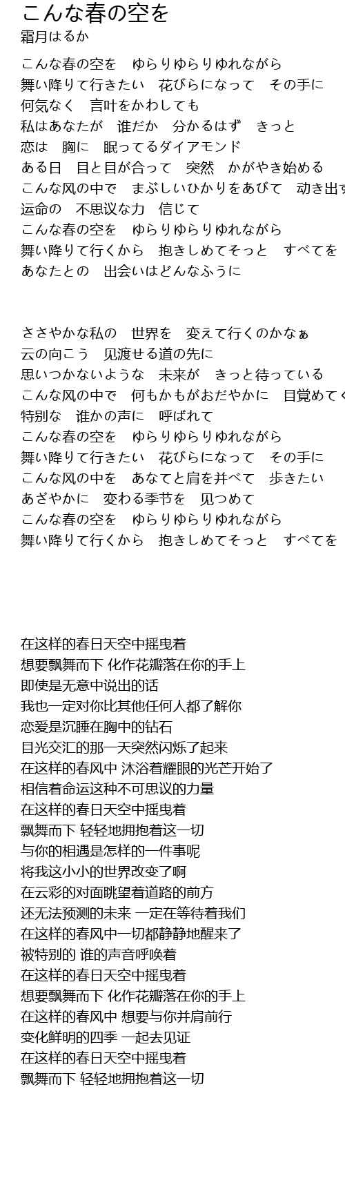 | [00:09.00] | 在这样的春日天空中摇曳着 |