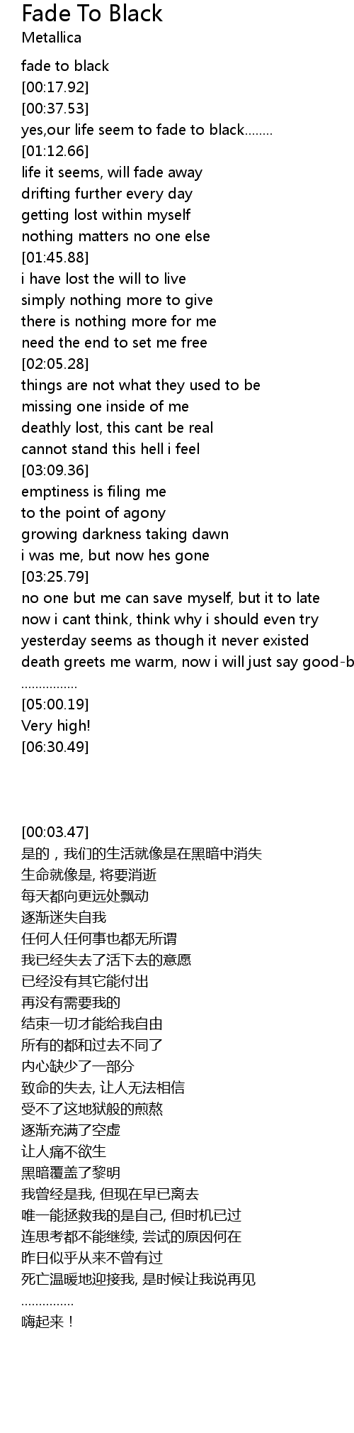 Fade To Black 歌词
