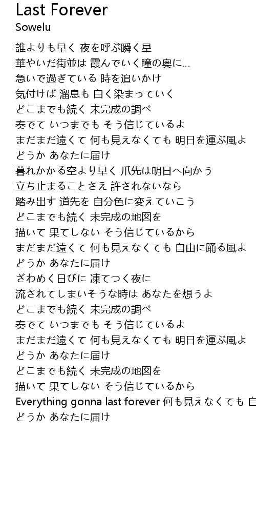 | Everything gonna last forever 何も見えなくても 自由に踊る風よ | |