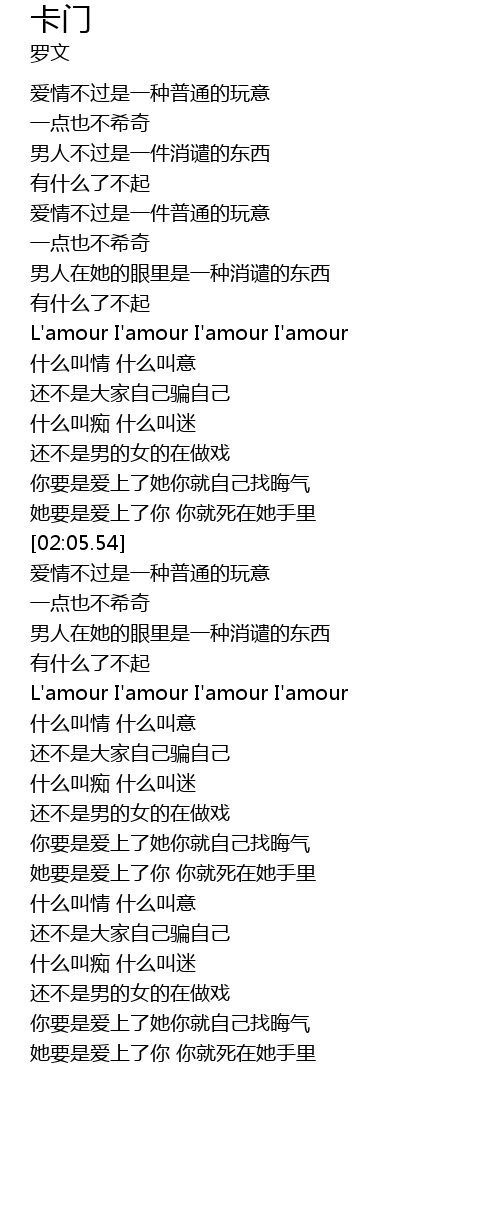 | [02:13.14] | 爱情不过是一种普通的玩意 |
