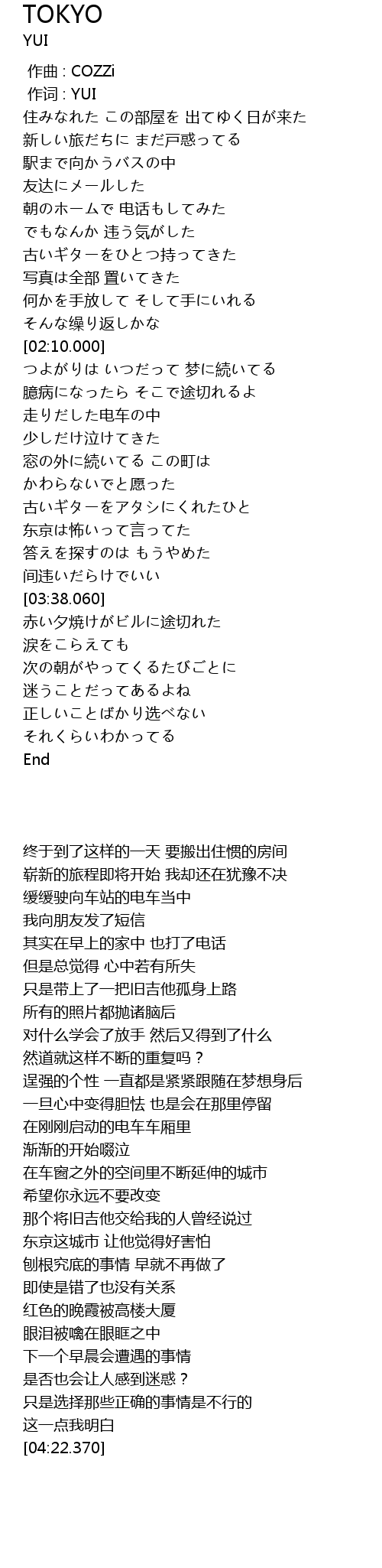 zuò cí : YUI |