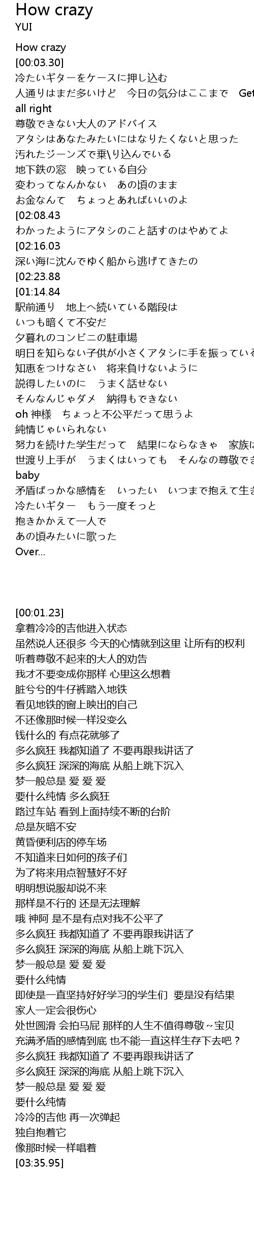 | [02:55.78][02:08.43][00:55.27] | How Crazy わかったようにアタシのこと話すのはやめてよ |
