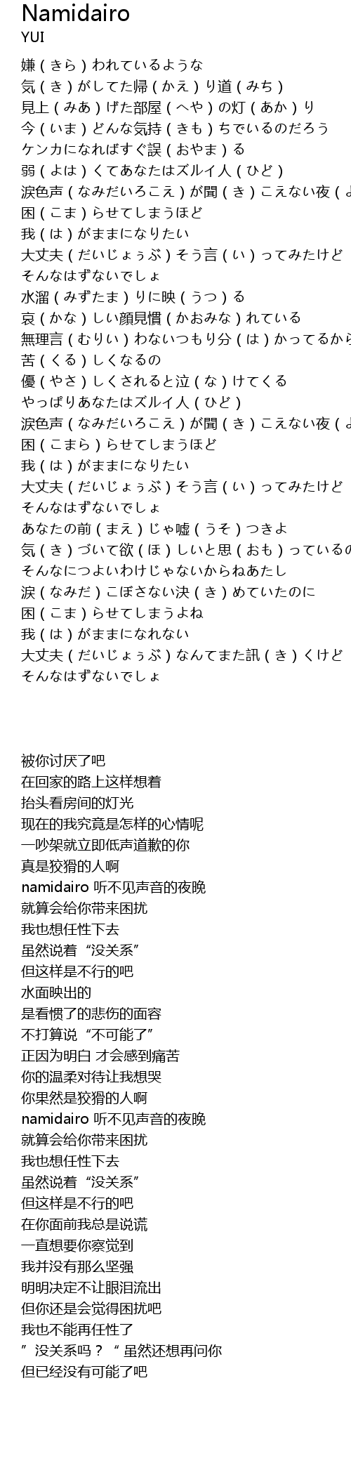 | 歌曲 | Namidairo |