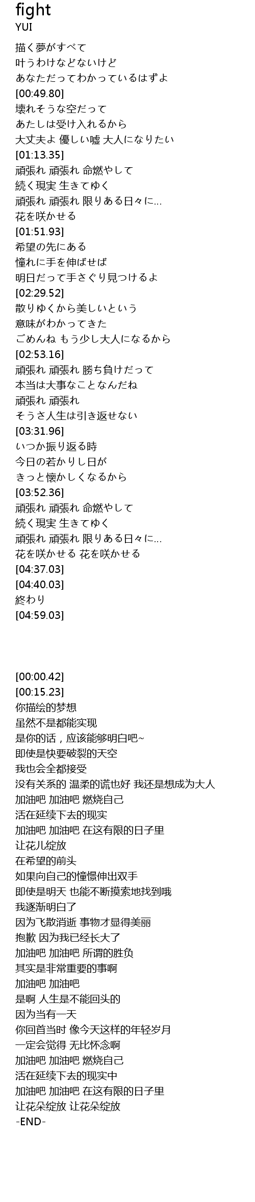 | [04:14.67] | 加油吧 加油吧 在这有限的日子里 |