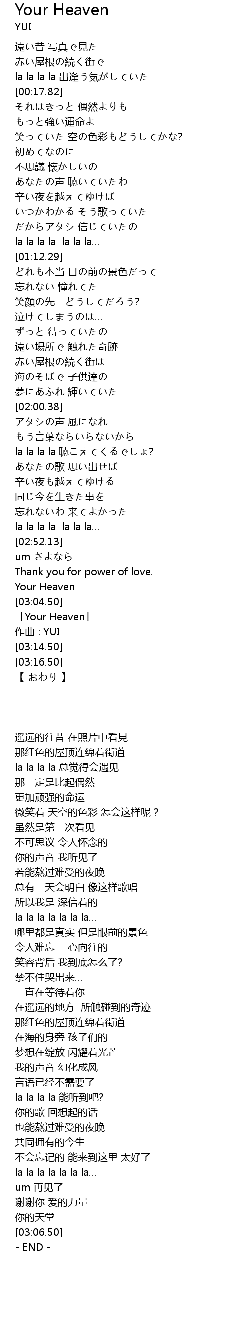 | [03:06.50] | 「Your Heaven」 |