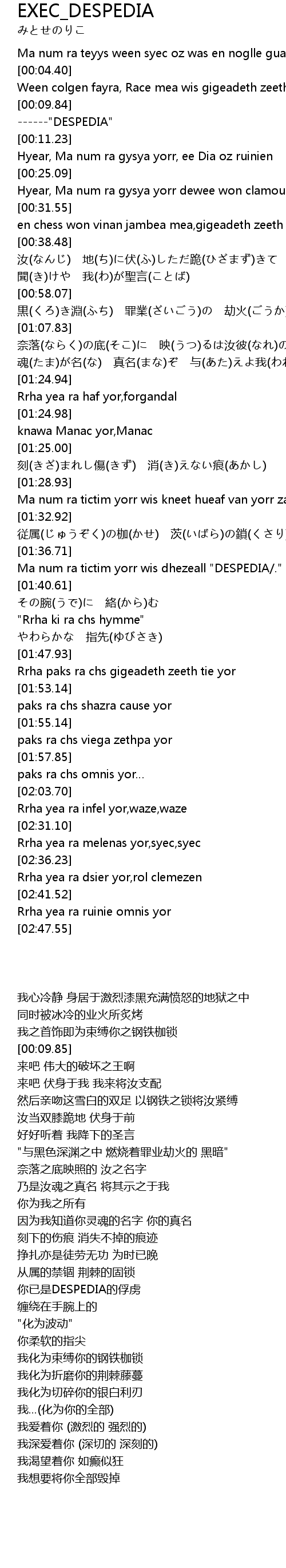 | [01:36.72] | Ma num ra tictim yorr wis dhezeall "DESPEDIA/." |