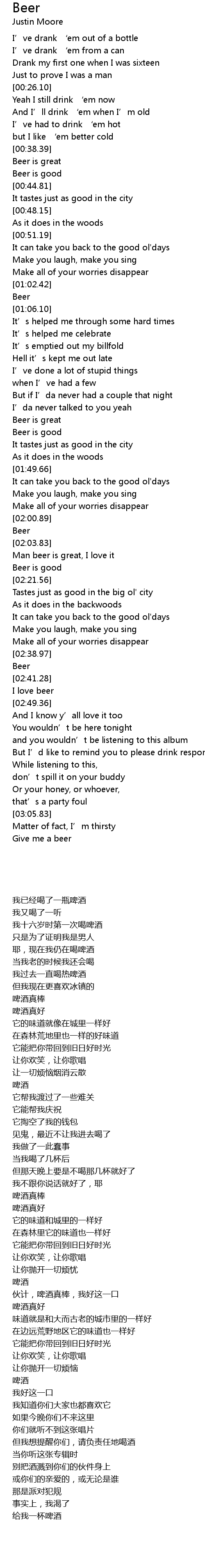 | [02:39.65] | Beer |