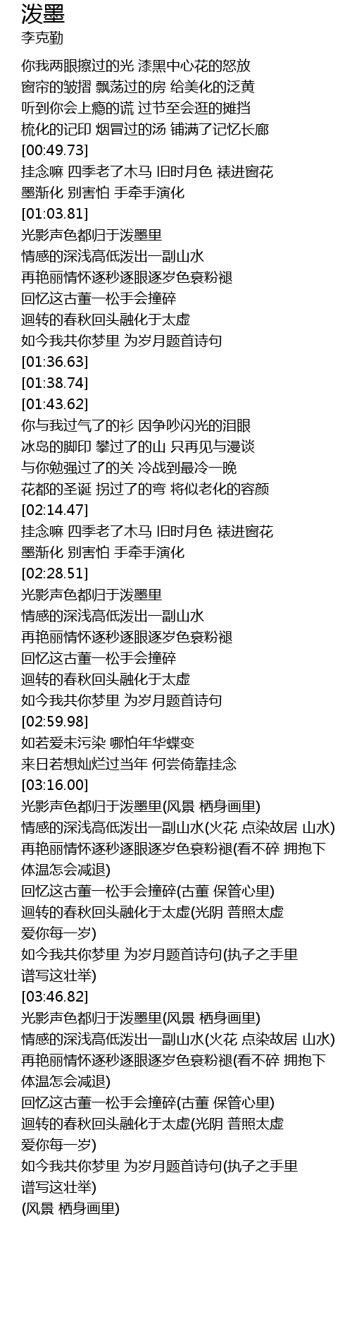 | [03:18.49] | 光影声色都归于泼墨里(风景 栖身画里) |