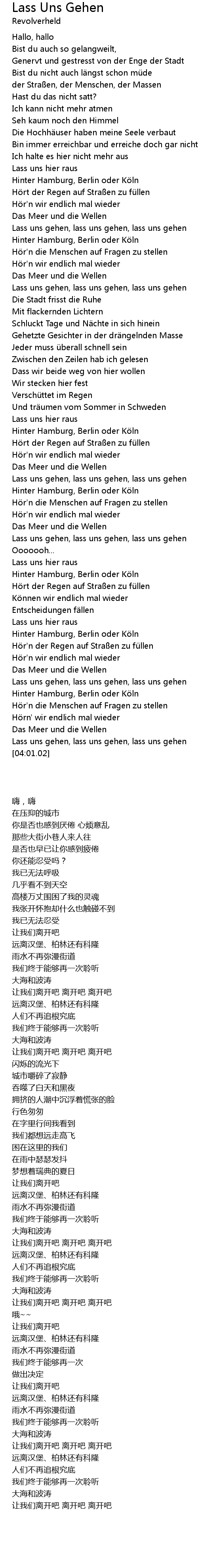 | [03:53.84] | Lass uns gehen, lass uns gehen, lass uns gehen |