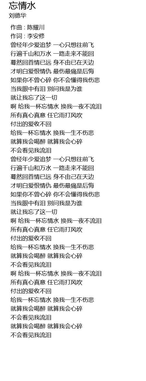 | [03:00.800] | 给我一杯忘情水 换我一生不伤悲 |