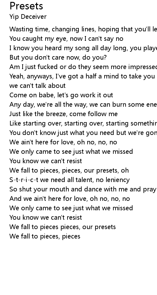 We fall to pieces pieces, our presets |