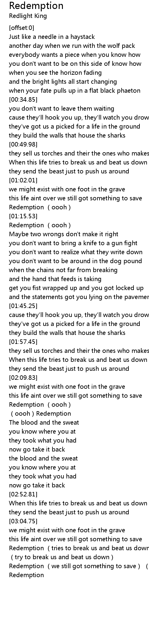 | [03:22.29] | Redemption (we still got something to save) (oooh) |