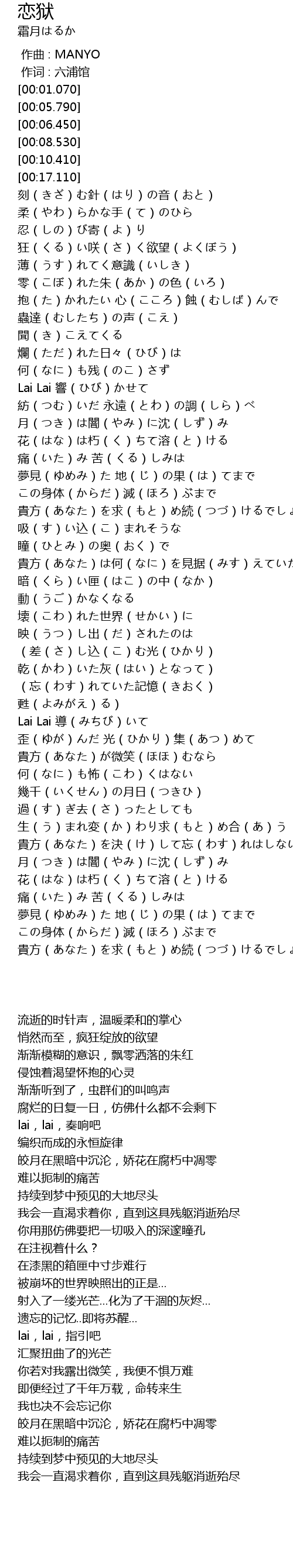 | [00:34.510] | 忍(しの)び寄(よ)り 狂(くる)い咲(さ)く欲望(よくぼう) |