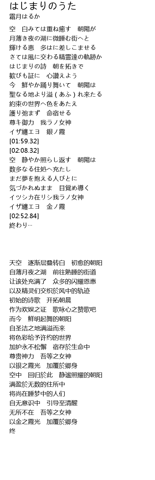 | [01:42.13] | 尊キ御力 我ラノ女神 |