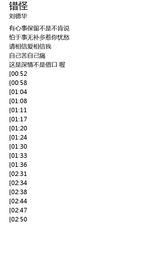 | [02:05][00:52] | bù duō shuō chéng nuò bú shì ài bù gòu |
