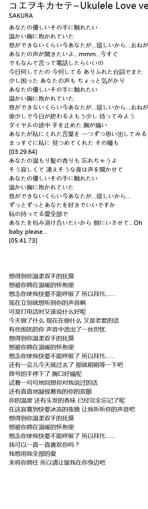 | [00:47.18] | あなたの声が聞きたいよ…mmm…今すぐ |