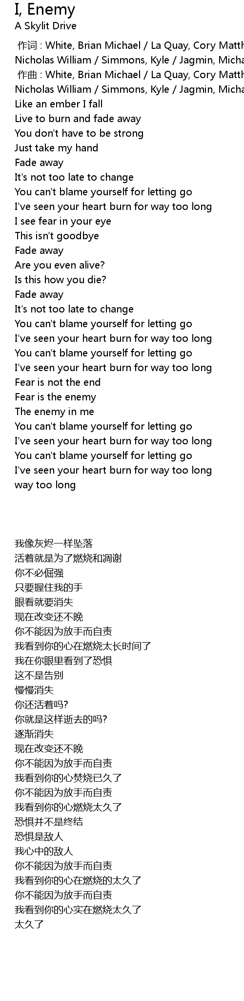 | [00:01.000] | 作曲 : White, Brian Michael / La Quay, Cory Matthew / Miller, Nicholas William / Simmons, Kyle / Jagmin, Michael |