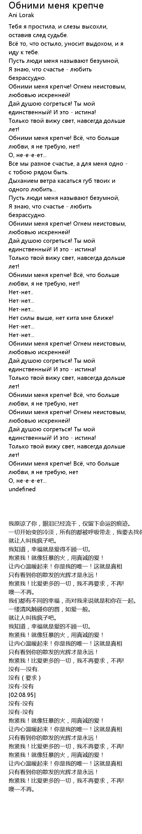 | [02:55.22] | Обними меня крепче! Огнем неистовым, любовью искренней! |