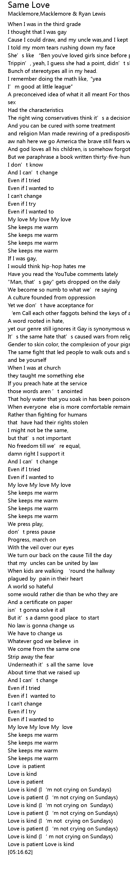 | [01:03.26] | A preconceived idea of what it all meant For those that liked the same sex |