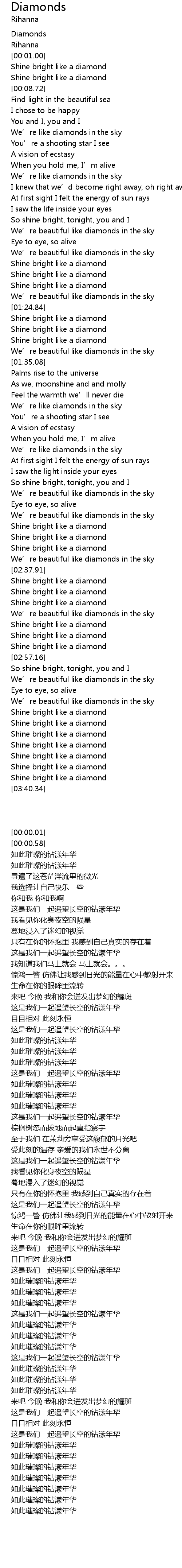 | [00:00.01] | Diamonds |
