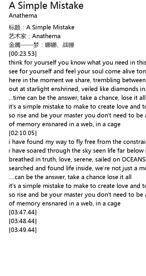 | [00:00.00] | biāo tí: A Simple Mistake |