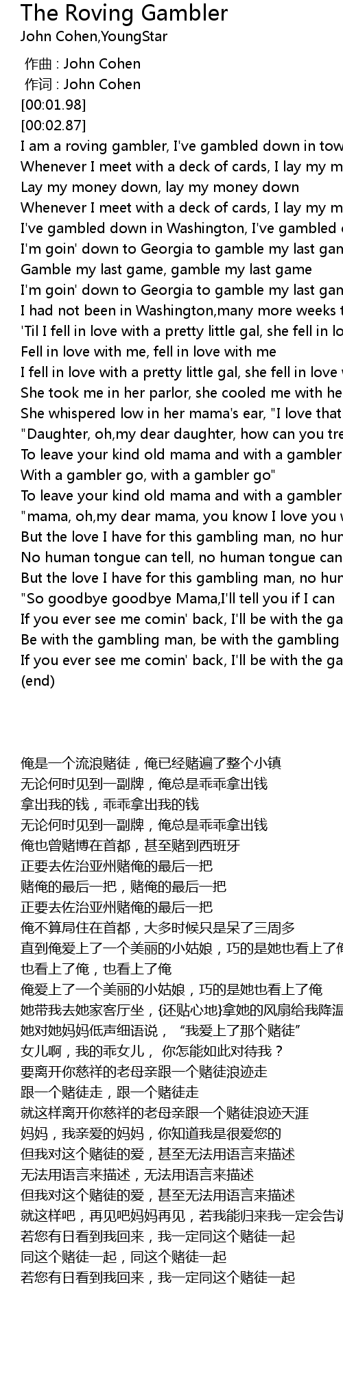 | 歌曲 | The Roving Gambler |