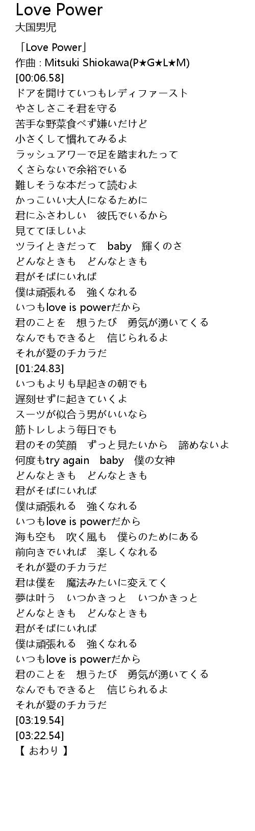| [00:01.58] | Love Power |
