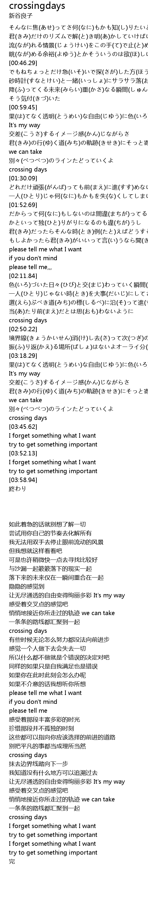 | 歌曲 | crossingdays |