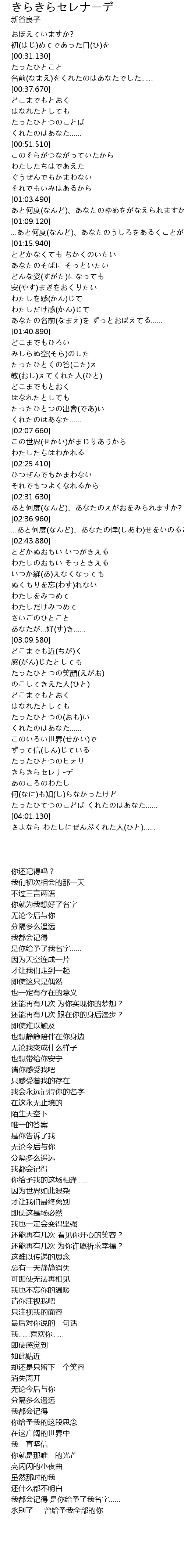 | [02:33.490] | あと何度(なんど)、あなたのえがおをみられますか? |