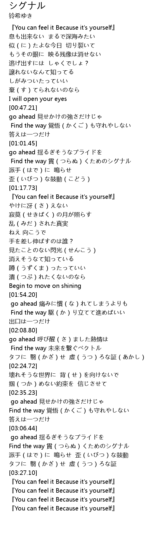 | [03:11.97] | Find the way 貫(つらぬ)くためのシグナル |