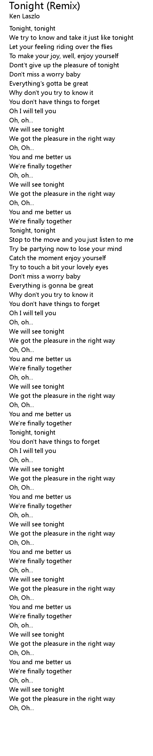 Tonight (Remix) 歌词