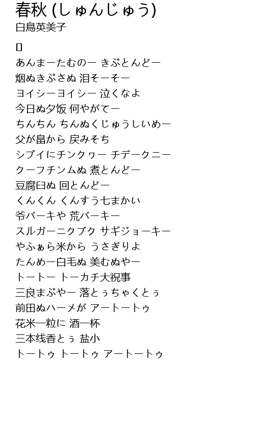 | 歌曲 | 春秋 (しゅんじゅう) |