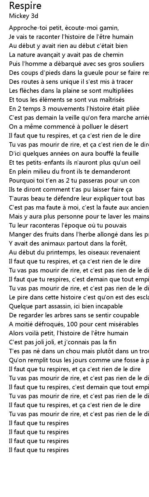| Il faut que tu respires, et a c' est rien de le dire | |