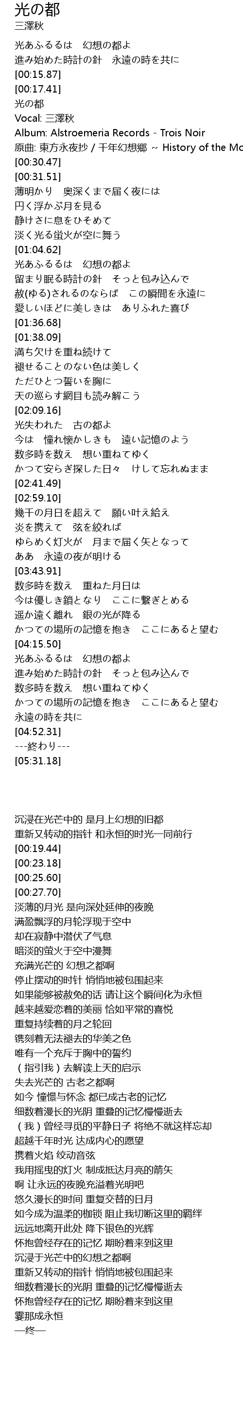 | [04:15.86] | 光あふるるは 幻想の都よ |