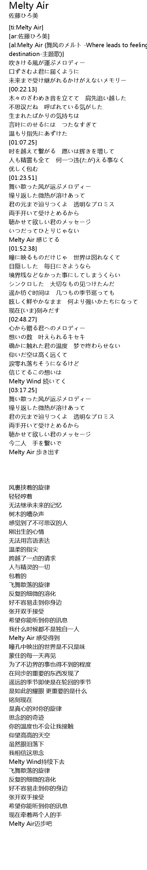 | [03:13.68] | Melty Wind持续下去 |