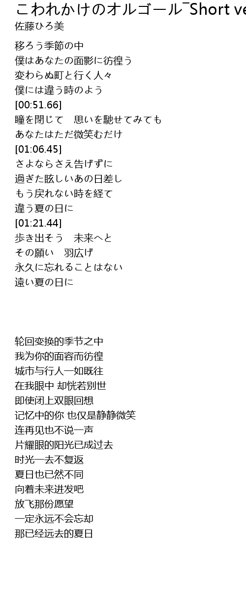 こわれかけのオルゴール―Short ver.― 歌词