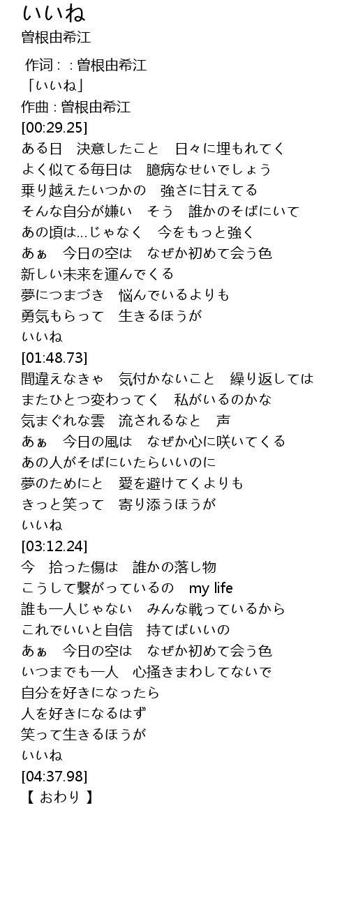| [01:44.75] | いいね |
