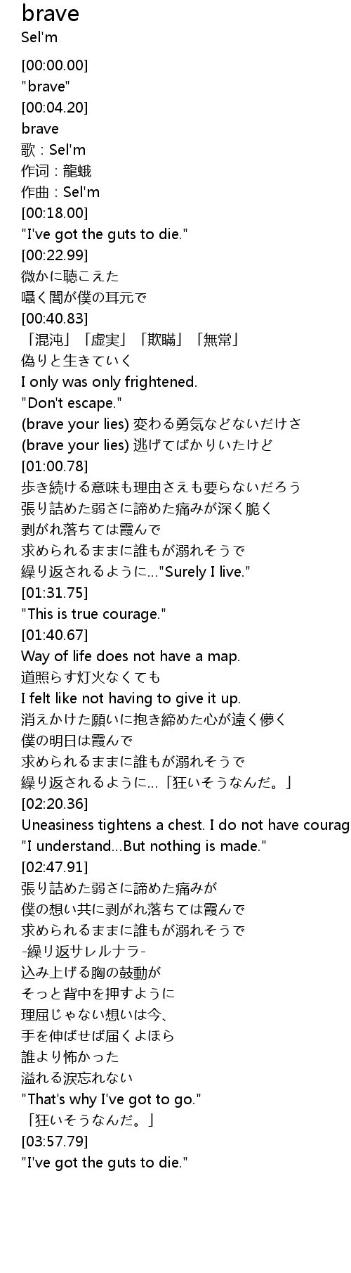 | [03:59.54] | "I've got the guts to die." |
