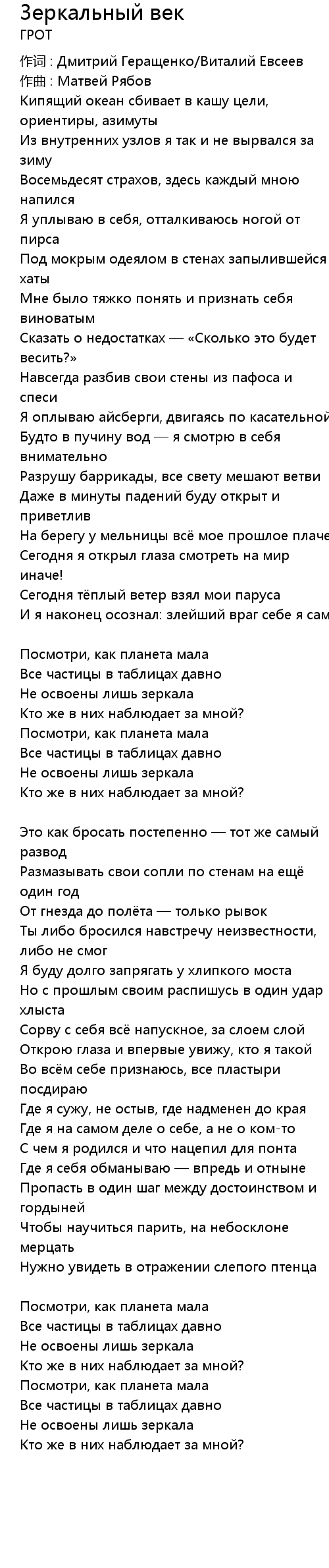 Зеркальный век 歌词