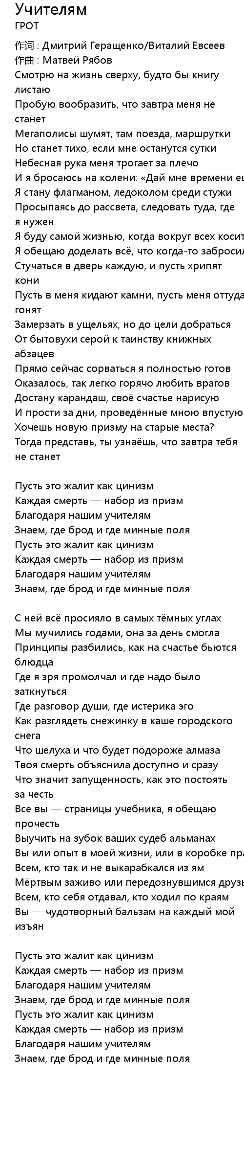 Учителям 歌词