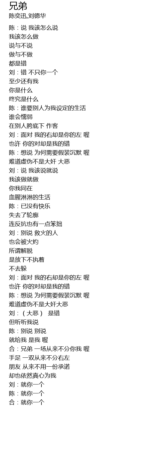 | [03:10.760] | 合:兄弟 一场从来不分你我 喔 |
