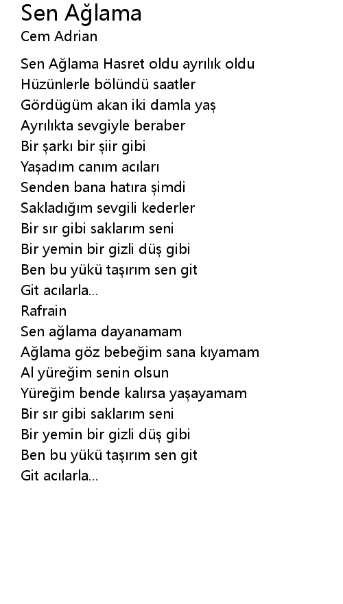 | Sen Ağlama Hasret oldu ayrılık oldu | |