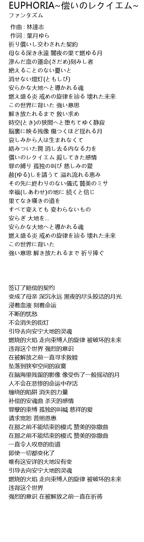 | [03:17.15] | 补偿的安魂曲 杀灭的感情 |